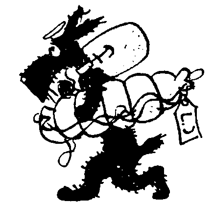 Ik ontmoet nog talloze bekenden en voordat ik het weet is het tijd om naar beneden te, gaan, want ik wil mijn vriendjes die ik naar Chobolobo zal begeleiden, niet laten wachten. Heel voorzichtig daal ik de lange statietrap af, ik heb namelijk een klein beetje op en dan wordt ik altijd dubbel voorzichtig. Mijn vriendjes zitten al in de motorschouw, die dansend langs het bordesje ligt. De felle lamp boven aan de valreep, schijnt in het water, zodat ik de bodem kan zien; de kiezelsteentjes en koralen dansen heen en weer op de maat van de golven. Een paar zweetpareltjes verschijnen om mijn neus. „Eventjes flink zijn", denk ik en met een sprong duik ik in de schouw, waar ik word opgevangen door mijn maats. |